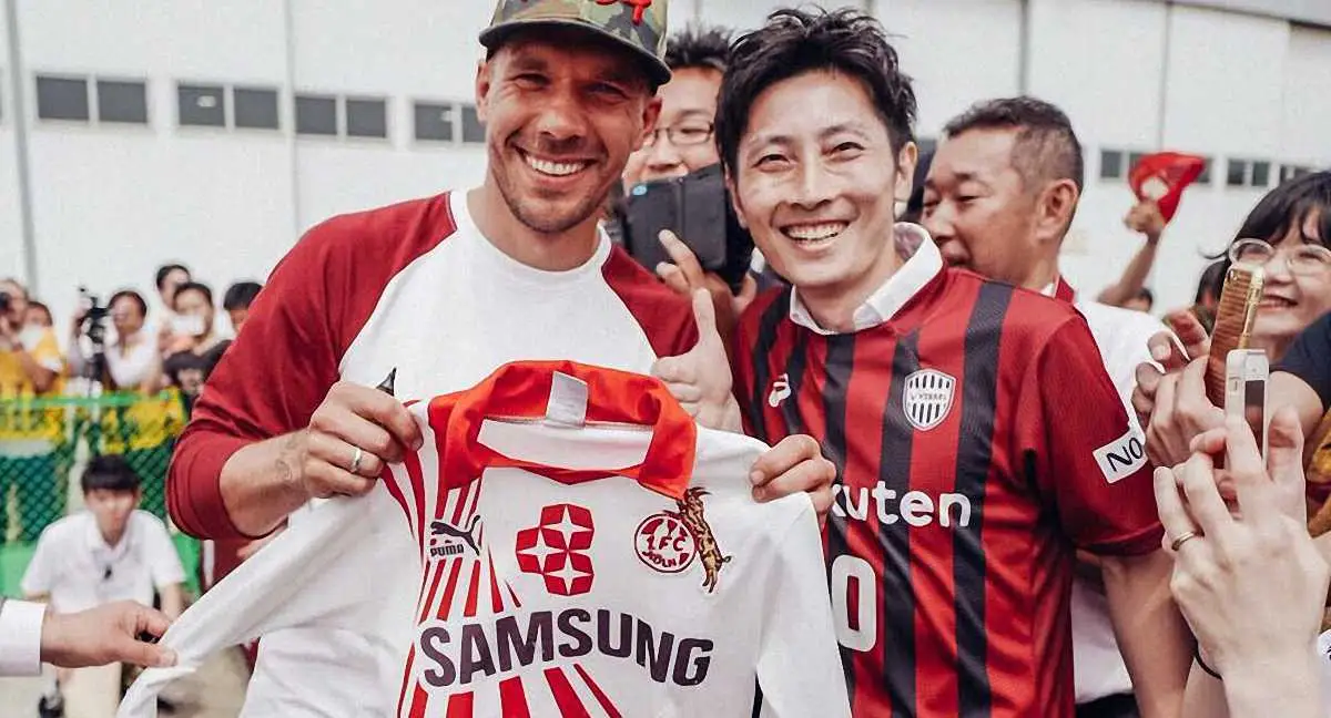 Немецкий форвард Виссел Кобе Лукас Подольски получил эпический "горчичник" в Кубке Японии.