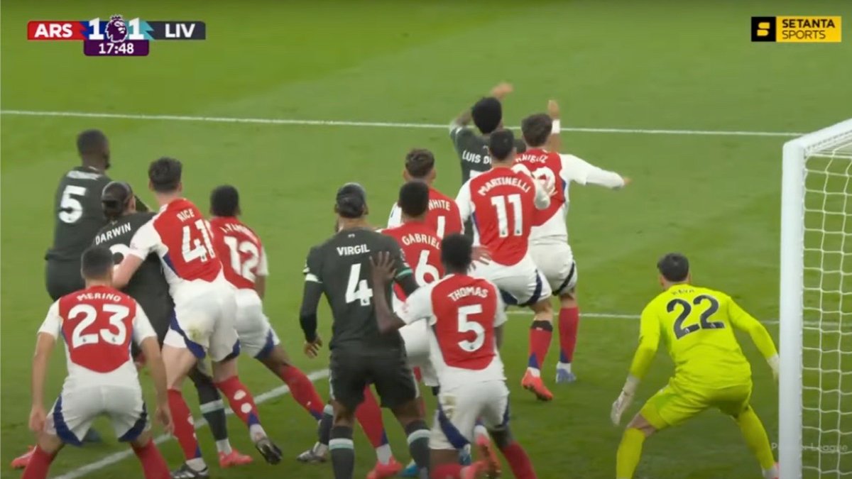 Счет в матче открыл Сака уже на 9-й минуте, когда он после передачи партнера отправил мяч в правую девятку. Вскоре Ливерпуль сравнял: Ван Дейк принял мяч во вратарской площадке после подачи с углового и головой поразил нижний правый угол ворот.