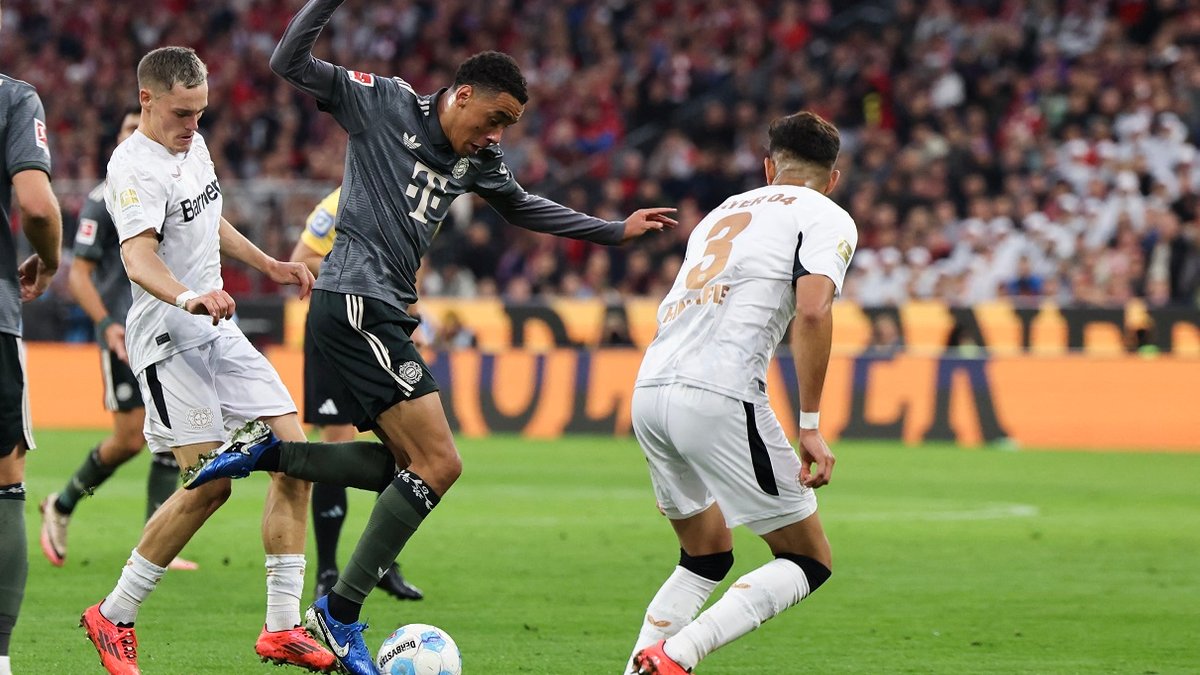 Первые полчаса встречи напоминали сонное царство. Бавария зажала Байер на его половине, однако до остроты почти не доходило. Главным нарушителем спокойствия выступил Джамал Мусиала. Бриллиант Мюнхена неточно приложился из-за пределов штрафной площади, а затем в бешеном слаломе накрутил 4 оппонентов и нарвался на шлагбаум Та. Штрафной удар Олисе просвистел мимо девятки.