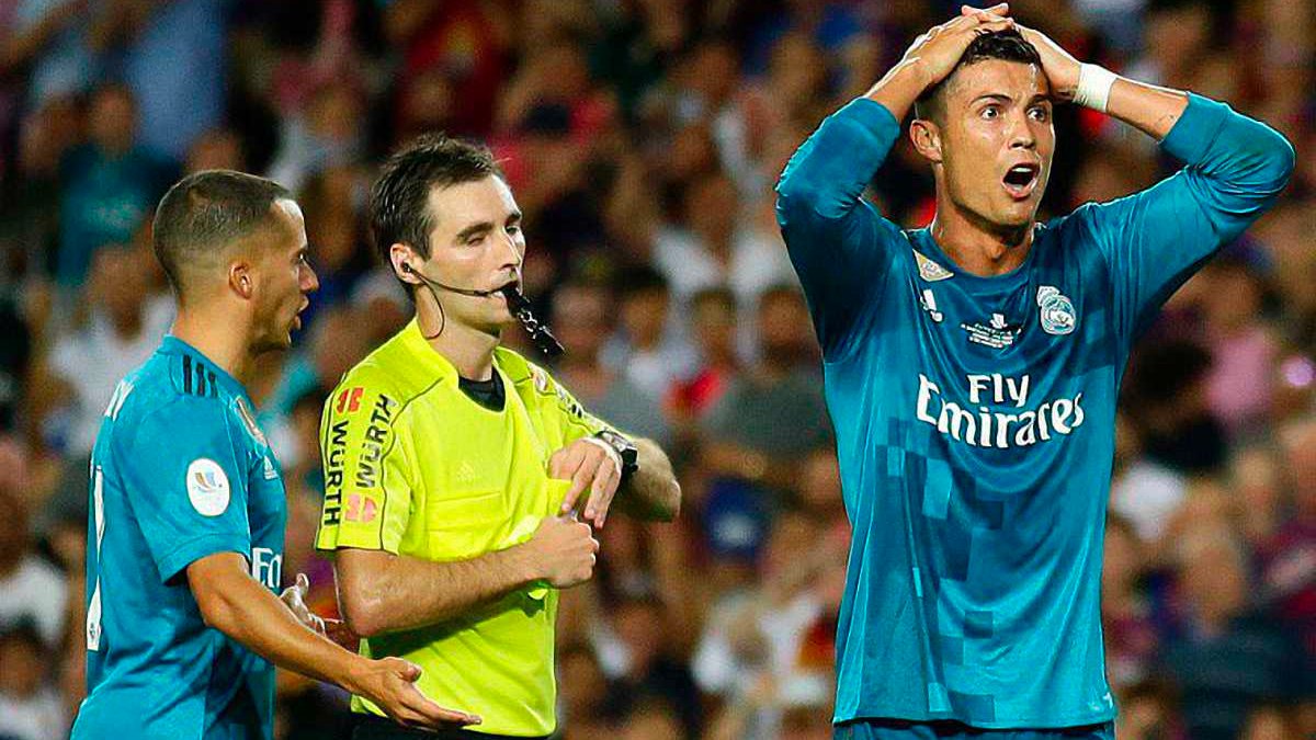 Криштиану Роналду упал в штрафной Барселоны после борьбы с Самуелем Умтити и, по мнению рефери, потребовал пенальти. Арбитр наказал португальца желтой карточкой, которая стала для него второй в этом матче. Криштиану Роналду не выдержал и толкнул судью, за что может быть жестко наказан.