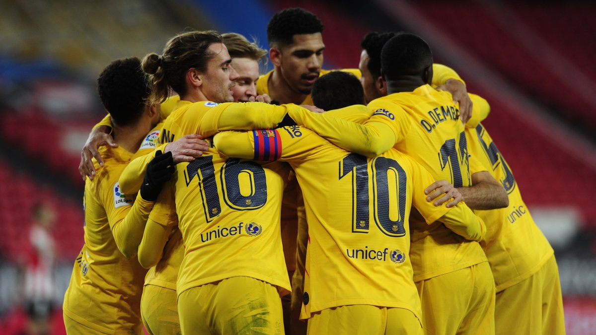 Баскам удалось забить быстрый гол – на 3-й минуте Уильямс получил мастерскую диагональ от Гарсии, ворвался в штрафную, вышел один на один с голкипером и пробил мимо него. "Блаугранас" ответили на 14-й – Де Йонг вытащил мяч практически с углового и сбросил на Педри, который с убийственного расстояния прошил вратаря. Под занавес тайма Педри в штрафной сбросил пяткой под удар Месси, который в касание пробил в левый нижний угол – 1:2.