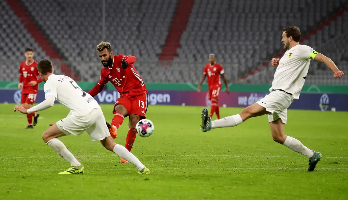 Бавария перенесла матч Кубка Германии с начала сентября на начало октября, чтобы лучше подготовиться к сезону. Представитель пятого дивизиона Дюрен приехал на Альянц-Арену. Ханси Флик выпустил в старте 4 дебютантов: Марка Року, Эрика-Максима Шупо-Мотинга, Буна Сарра и Алекса Нюбеля. Также официальный камбэк оформил Дуглас Коста.