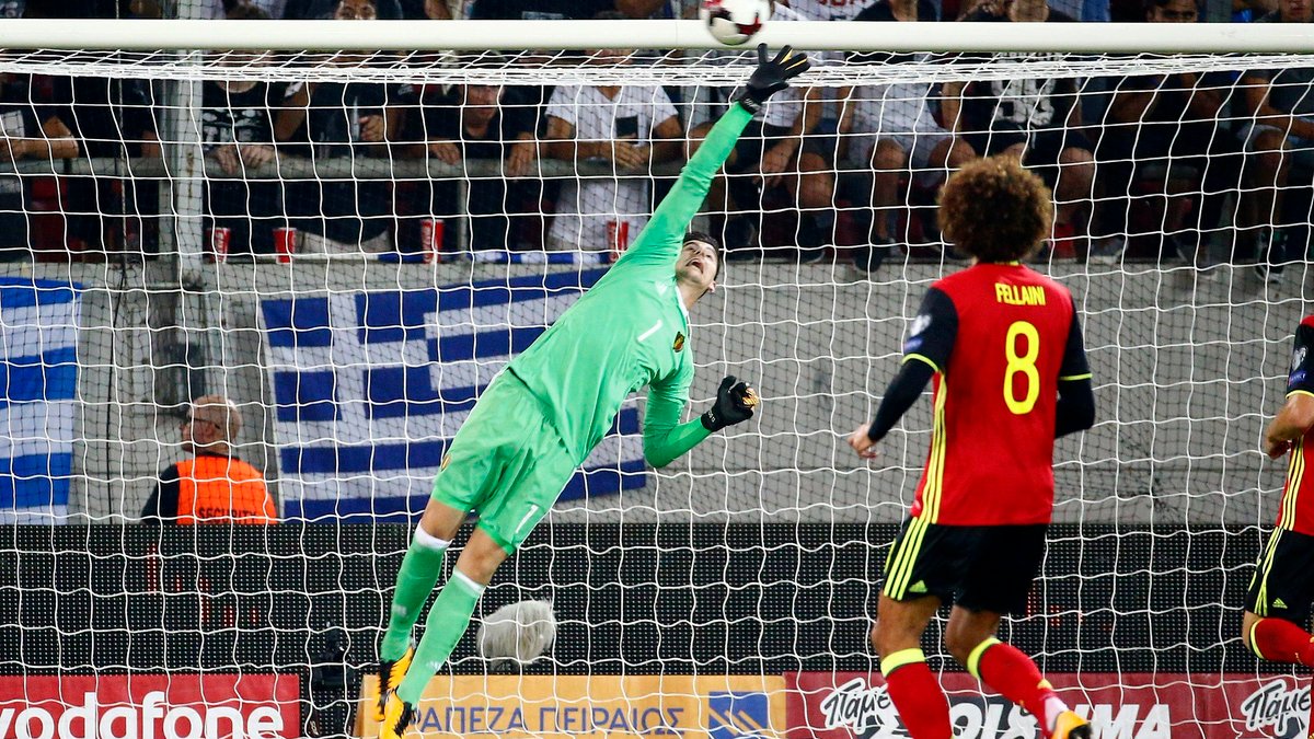 Первый тайм прошел довольно ровно. Бельгийцы ожидаемо контролировали мяч, Греция же играла на контратаках. И именно контратаки греков были острее. Момент имел Донис, но Куртуа справился с ударом. А вот посля удару Стафилидиса Куртуа помочь не мог, но мяч угодил в стойку.