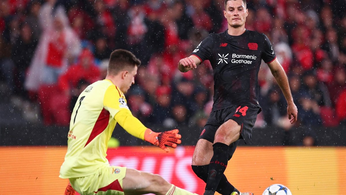 Бенфика значительно лучше начала игру и имела несколько возможностей, чтобы "размочить" счет. Люкебакио попал в крестовину, пушку Риоса потянул Флеккен, а Судаков на пространстве крайне неудачно подал. Георгий действовал значительно лучше на 31-й минуте, когда вырезал роскошную передачу на голову Баррейро, однако люксембуржец промахнулся. Вскоре каркас еще раз спас Байер. Отаменди замыкал подачу Судакова с углового – перекладина помешала чемпиону мира.