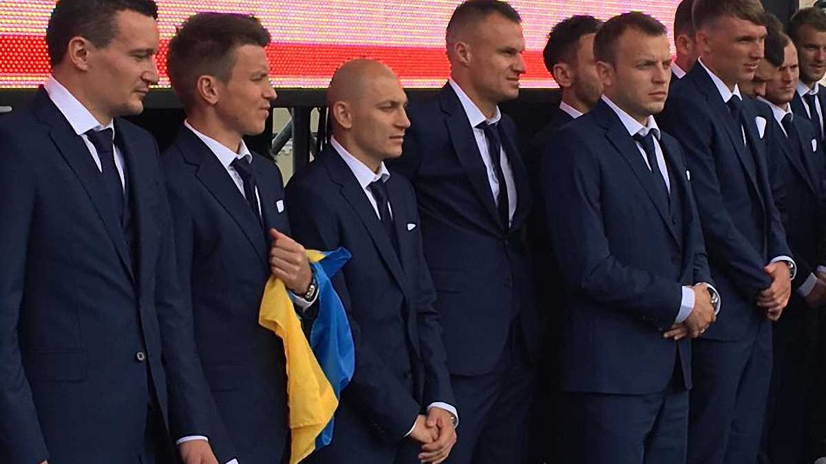 В торжественной церемонии приняли участие игроки и тренеры команды, президент Украины Петр Порошенко, министр спорта Игорь Жданов и другие госчиновники.