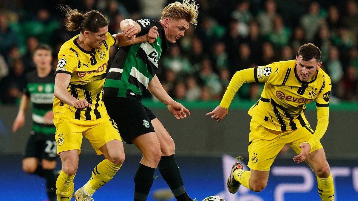 Уже на старте встречи Хардер мощно стрелял по воротам Боруссии, но защитник успел заблокировать удар. В ответ Джан замыкал навес с углового – сфера пролетела над перекладиной. На 15-й минуте Араухо должен был выводить Спортинг вперед, однако из пределов штрафной попал в перекладину. Вскоре уже Кобель помешал удару Симойнса.