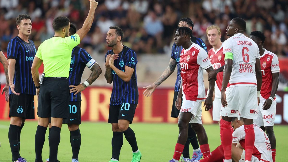 Наставник Монако Ади Хюттер попросил главного арбитра разрешить Интеру выпустить на поле другого игрока вместо Чалханоглу – чтобы команды были в равных составах, но судья отклонил эту просьбу.