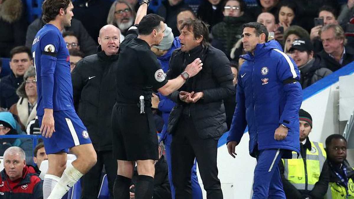 В 14 туре АПЛ Челси дома принимал Суонси, который ведет борьбу за выживание. В первом тайме после одного из моментов Антонио Конте был взбешен решением главного арбитра Нила Суорбрика, а свое недовольство выражал четвертому рефери Ли Мейсону, за что был отправлен из технической зоны. После удаления Конте действиями команды руководил его ассистент Анджело Алессио.
