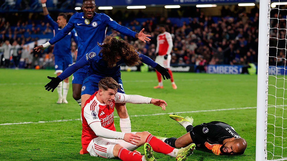 Микелю Артете пришлось выставлять экспериментальную пару центрбеков. Габриэл находится в лазарете, а Салиба получил повреждение на предматчевой тренировке. Вместо них вышли Инкапье и Москера. Казалось, что теперь у Челси будет возникать немало моментов – впрочем, к концу первого тайма вспоминается только одна острая атака.