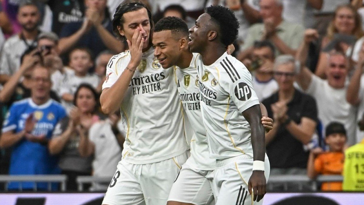 Реал повел в счете на 28-й минуте. Винисиус получил мяч на правом краю штрафной и вместо передачи "шведой" исполнил в дальний угол – 1:0 в пользу Мадрида! Спустя 10 минут бразилец классно ассистировал Мастантуоно, отдав на свободный прострел в контратаке – аргентинец ударом под перекладину забил свой первый мяч в футболке Реала.