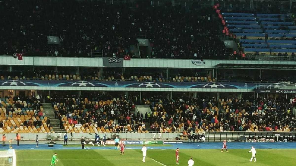 Весь первый тайм турки бросали петарды на нижний ярус. Одну из них бросили в ложу прессы.