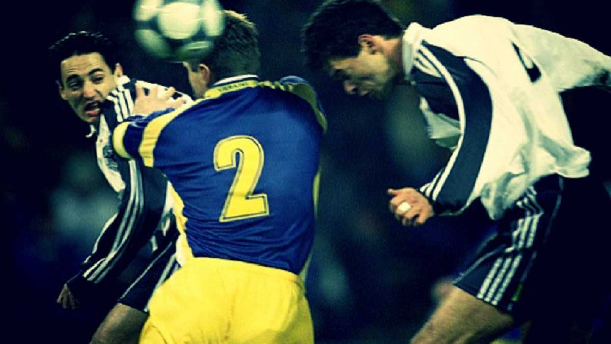 11. Стыковой матч за путевку на ЧМ-2002. Украина – Германия – 1:1. Воздушная дуэль Тимощука, Зубова и Баллака.