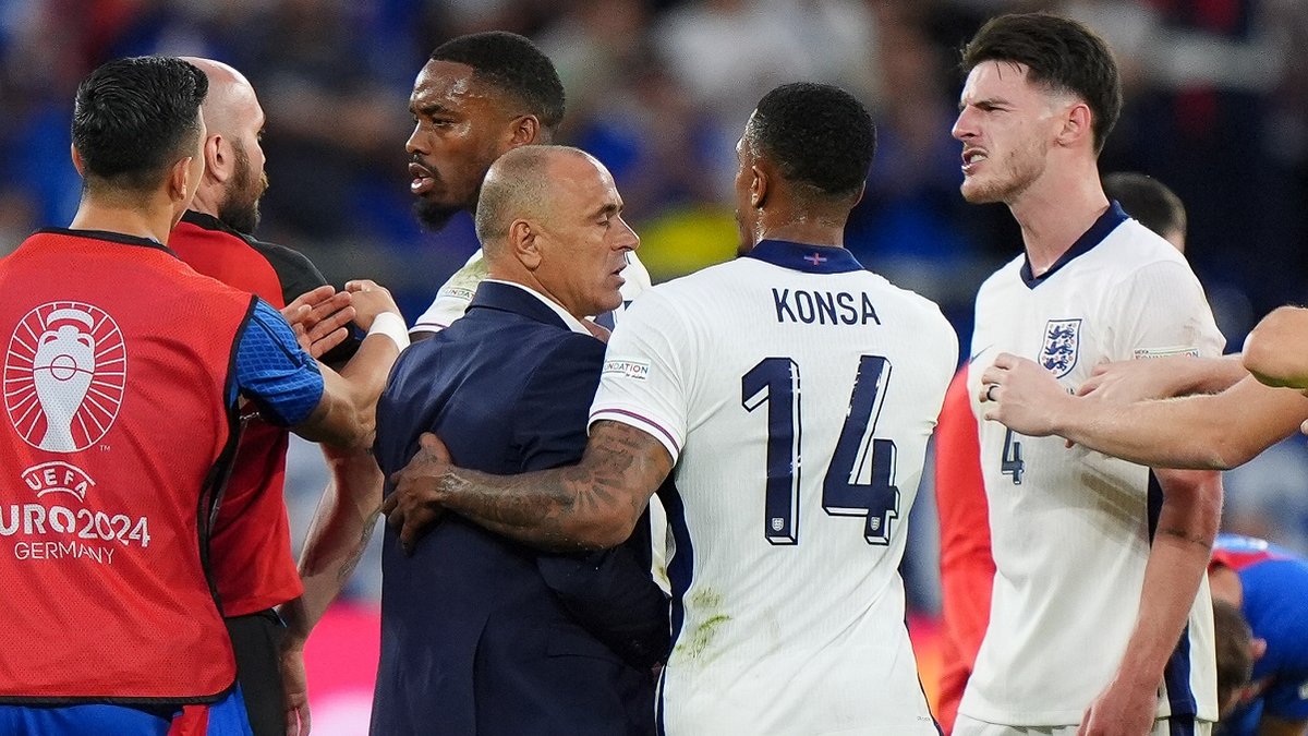 После финального свистка (Англия победила в овертайме) Деклан Райс побежал в техническую зону Словакии и выкрикивал оскорбления. Хавбек Арсенала требовал у словаков "заткнуться", а главного тренера Франческо Кальцону назвал "лысой п**дой".