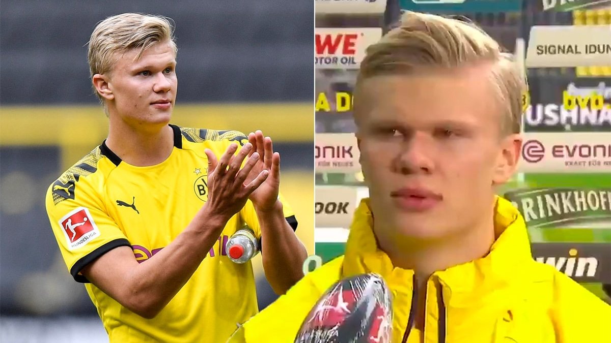 Напомним, Эрлинг Холанд открыл счет в Рурском дерби, которое завершилось избиением Шальке со счетом 0:4. После поединка 19-летний форвард пообщался с одним из журналистов – этот разговор уже окрестили "интервью года". Холанд сумел вложить разговор в 11 слов.