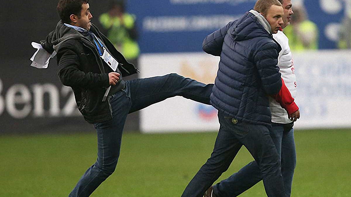 "Фанат остановился в районе штрафной, напротив фанатского сектора "Динамо", и стал демонстрировать неприличные жесты. Запасные со скамейки "Динамо" даже запустили в его сторону мячом, чтобы как-то прогнать хулигана. Мы поняли, что его надо убирать собственными силами, иначе ситуация никак не решится. А когда мы приблизились к нему, я услышал именно в свой адрес жуткий поток оскорблений. Первой реакцией было его ударить, но никакого сильного удара там не было. Поеду в полицию, чтобы написать объяснительную. Я совершенно не прав в том, что ударил человека сзади и за это хочу перед ним извиниться", - приводит слова Дерунца "Чемпионат".