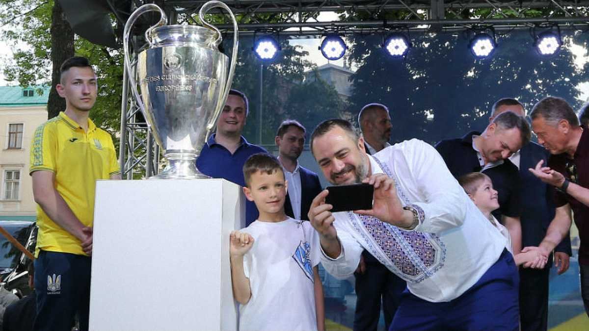Сначала главный еврокубковый трофей подорвал информационное пространство, "засветившись" в одной из церквей Днепра в присутствии настоятеля храма, Андрея Павелко, а также тестя сына президента ФФУ Александра Петровского. Последнего различные СМИ называют днепровским криминальным авторитетом, известным под прозвищем "Алик Нарик".