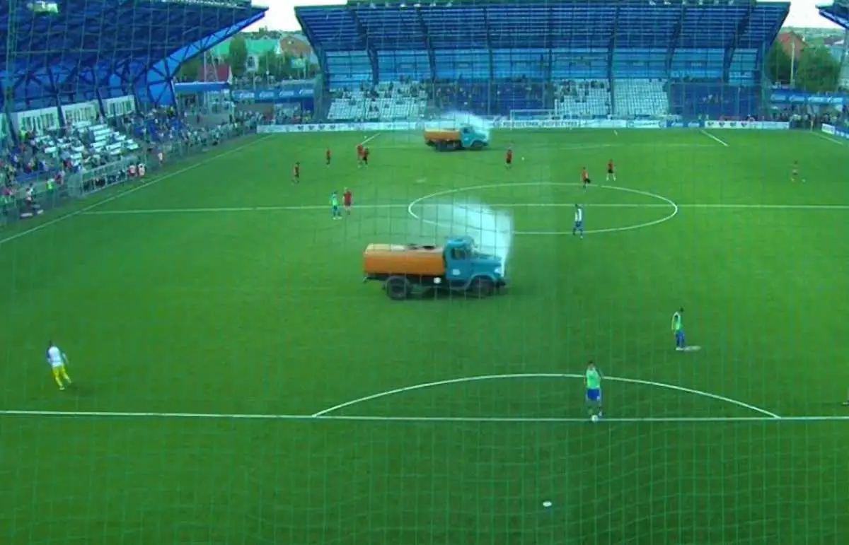 Как в чемпионате России поливают газон с грузовиков – появились эпические фото