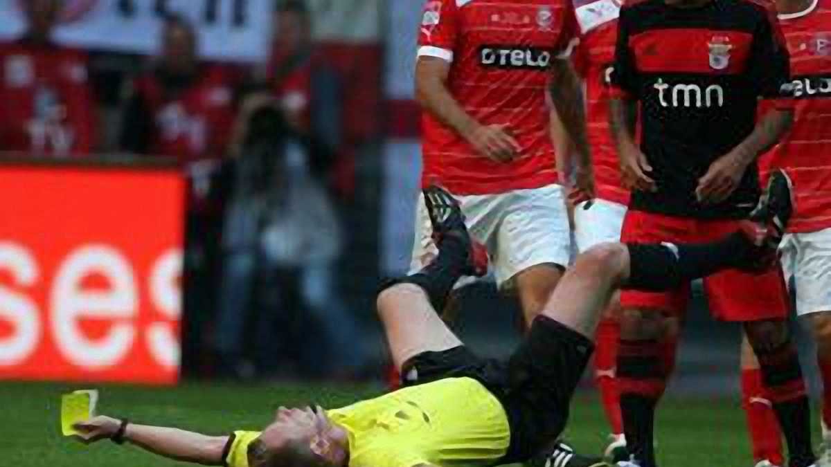 На 43 минуте матча в Дюссельдорфе арбитр Кристиан Фишер прервал встречу, чтобы показать игроку "Бенфики" Хави Гарсии вторую желтую карточку. Однако Фишеру не удалось удалить игрока с поля. Ему помешал бразильский игрок португальцев Луизао, который схватил арбитра. После спецприйома Фишер потерял сознание...