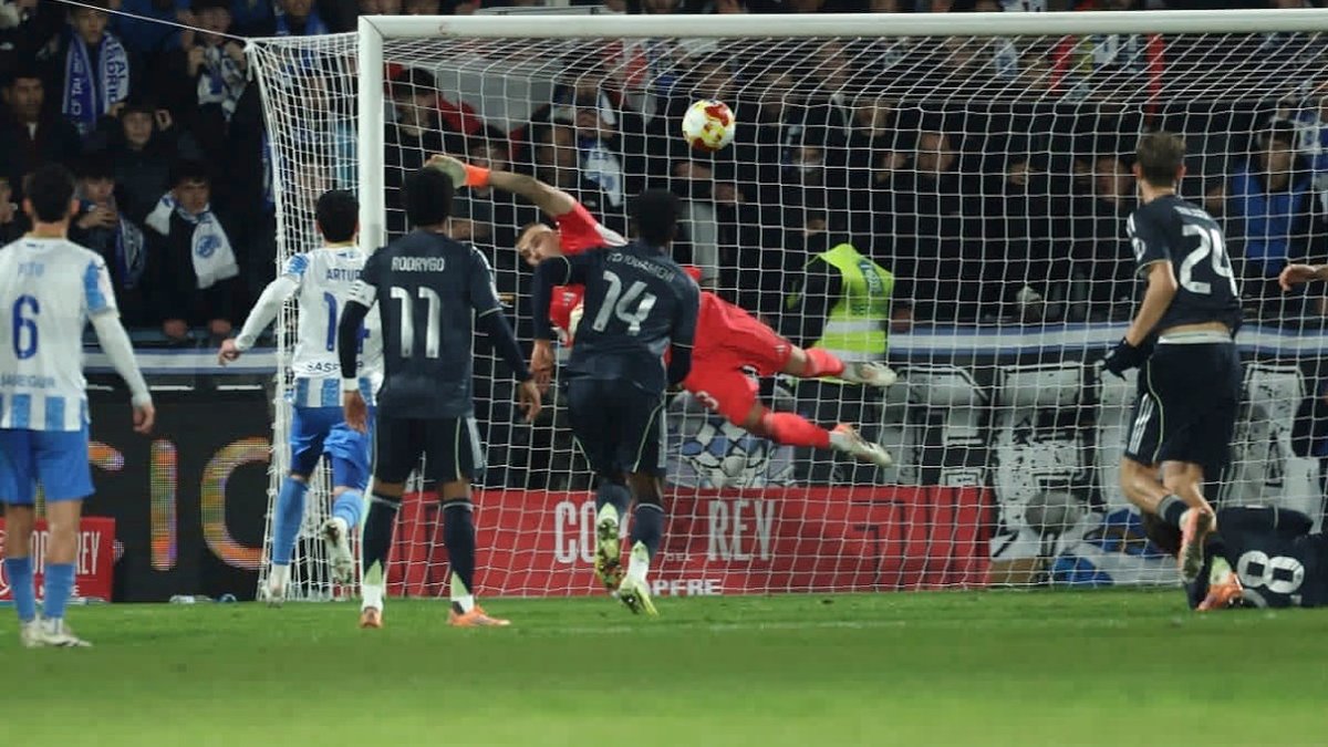 Лунин совершил три сейва, один из которых стал решающим: на последних секундах украинский голкипер снова поразил невероятной реакцией, переведя мяч на угловой и спасая Реал от экстра-таймов.