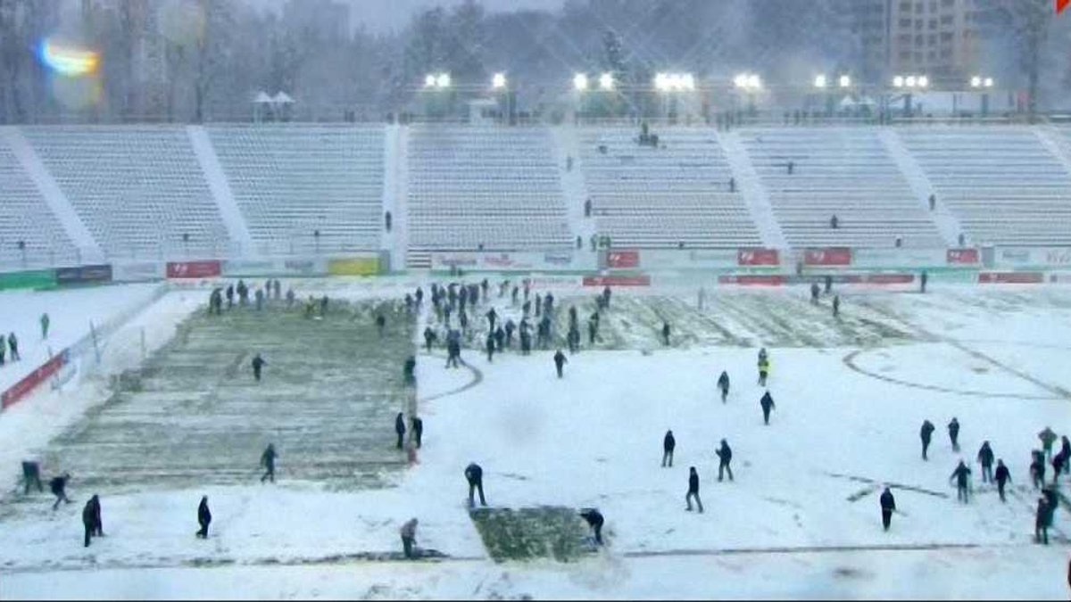 Команды доиграли первый тайм несмотря на то, что газон поля полностью засыпало снегом. Правда, главный арбитр матча Екатерина Монзуль решила прервать матч пока не будет расчищено газон стадиона "Украина".