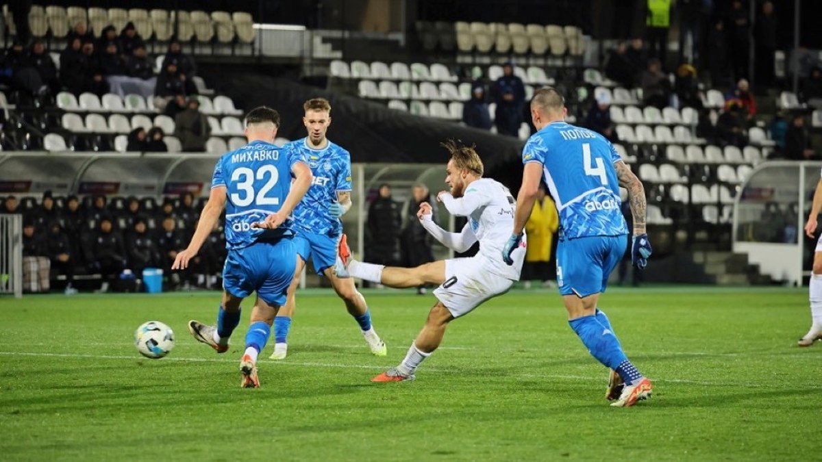 Уже на 9-й минуте все обернулось против "бело-синих". Козик длинной подачей вынес мяч со своей половины, тот пролетел за спины защитников, и Климчук первым оказался на подборе перед штрафной. Форвард не стал терять ни секунды – мгновенным ударом пробросил мимо Нещерета и открыл счет – 1:0!