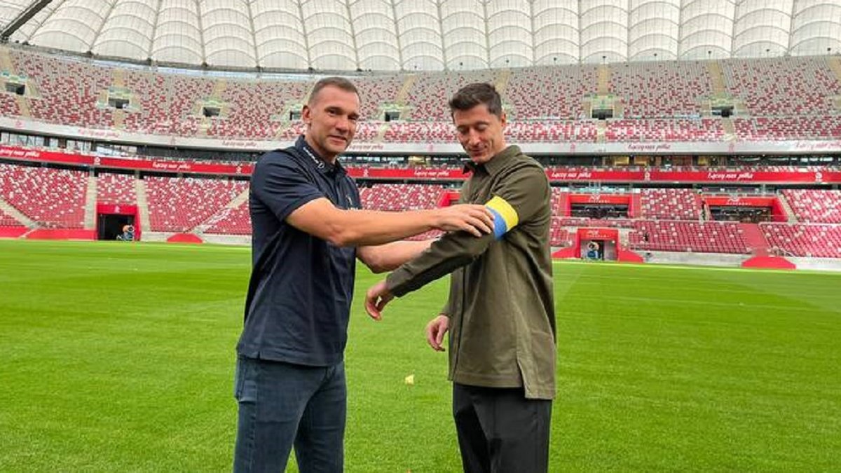 Шевченко подарил Левандовски капитанскую повязку в цветах флага Украины – легенда имеет одну просьбу