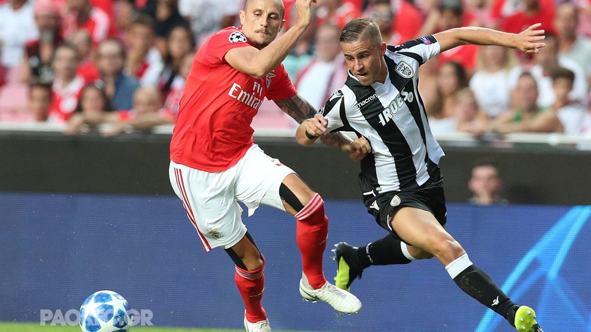На 45+1 минуте рефери увидел нарушение правил в штрафной площадке греческого клуба и назначил пенальти, который успешно реализовал нападающий Бенфики Пицци.