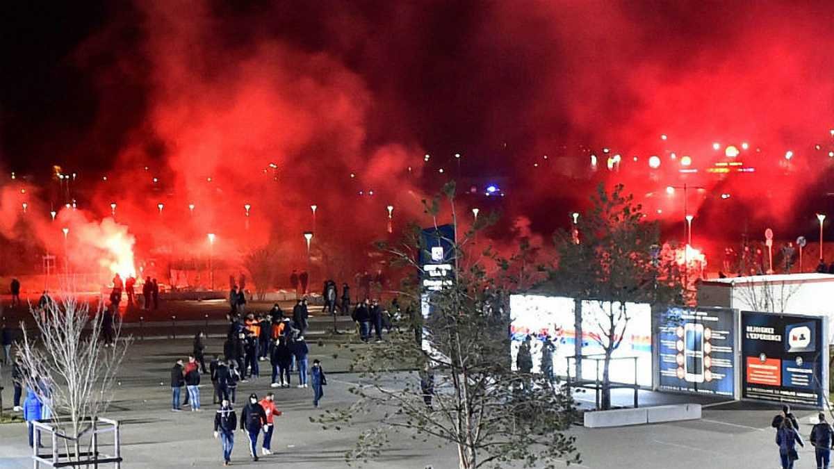 Фанаты Лиона использовали пиротехнику, скандировали расистские выкрики, бросали на поле посторонние предметы, а перед матчем еще и подрались с полицией.
