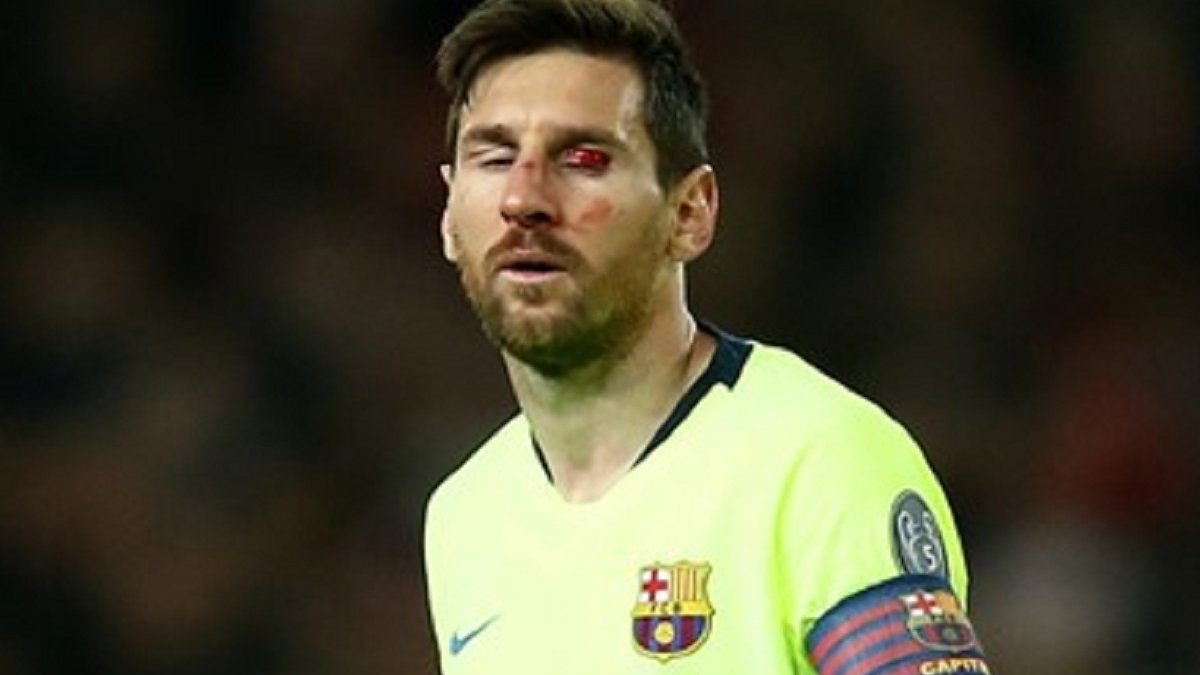 Нападающий "блаугранас" Лионель Месси столкнулся с защитником "красных дьяволов" Крисом Смоллингом и получил неприятный удар локтем в лицо. Врачам понадобилось некоторое время, чтобы остановить кровь.