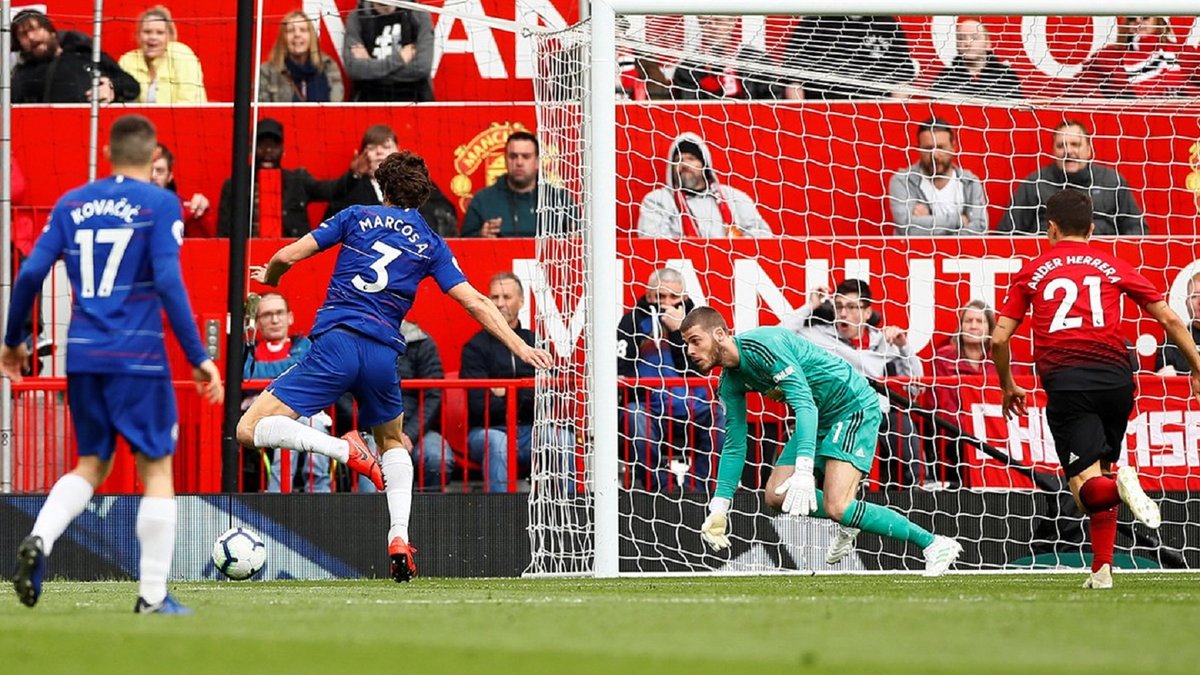 Защитник Челси Антонио Рюдигер решился на дальний выстрел, казалось, это "рабочий" удар для голкипера, но Давид Де Хеа с ним не справился. Испанский голкипер отбил мяч перед собой, где уже караулил его соотечественник Маркос Алонсо, который сумел переиграть звездного вратаря. Справедливая ничья после первого тайма.