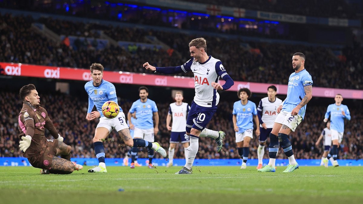 Старт встречи был для Ман Сити оптимистичным. Холанд имел две хорошие возможности – немного неточно и сейв Викарио. А вот Тоттенхэму хватило простенького заброса. Кулусевски на фланге переиграл Гвардиола и выкрутил идеальную подачу Мэддисону, который голом отметил свой 28-й день рождения.