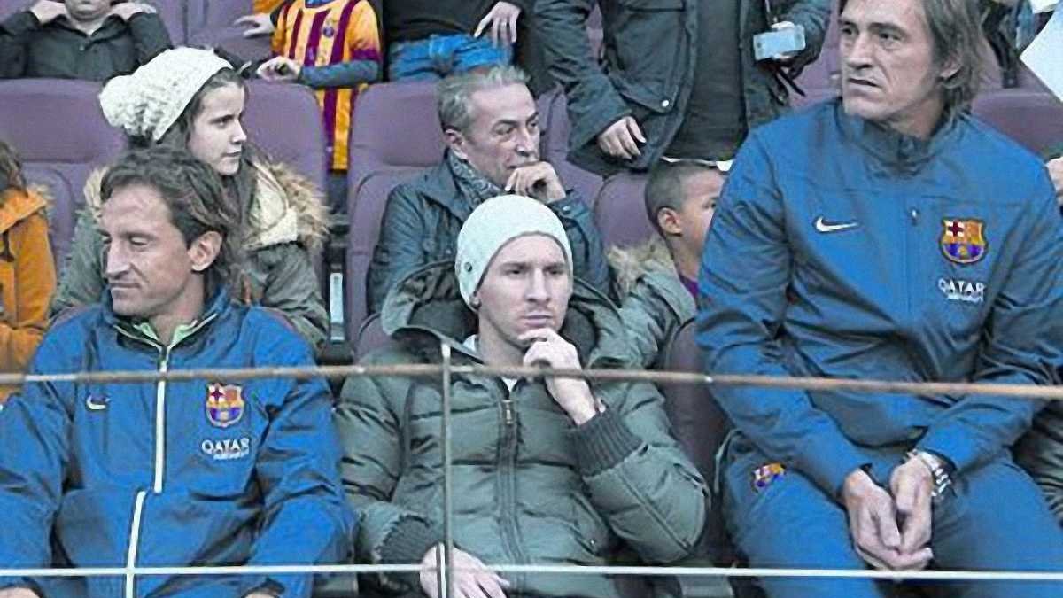 Аргентинец пришел поддержать партнеров на костылях с зафиксированным коленом. Оберегал Месси от чрезмерного интереса давний "слуга" каталонского клуба Пепе Коста.