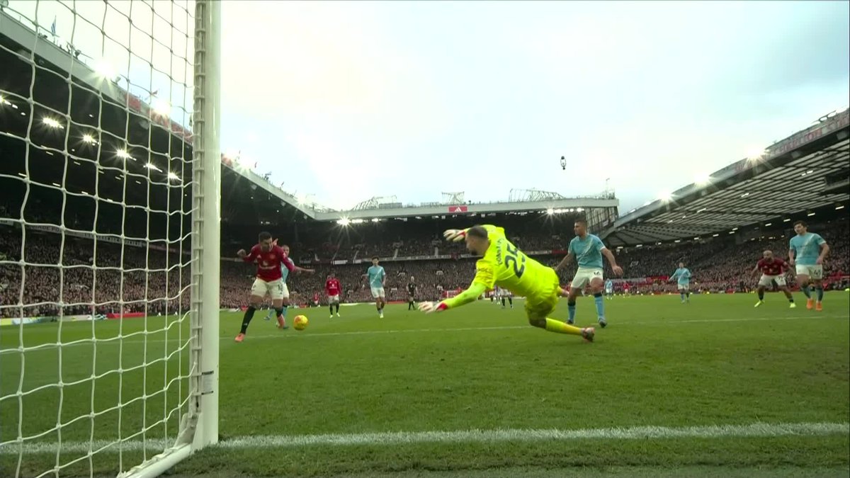 На старте второй половины, хоть Пеп в перерыве выпустил О'Райли с Шерки вместо Аллейна и Фодена, мало что изменилось. Опасный прострел с правого фланга готовы были замыкать сразу трое манкунианцев, но не сложилось. Свежий левый защитник Сити только ценой желтой способен остановить Амаду. Что они ели там на Кубке Африки, что гости так вяло на их фоне действуют? А вот и Холанд. Далот ужасный поперечный пас отдал, Мейну, который проводит дебютный матч в основе благодаря уходу Аморима не успел сориентироваться, и норвежца остановил лишь отчаянный подкат Мартинеса.