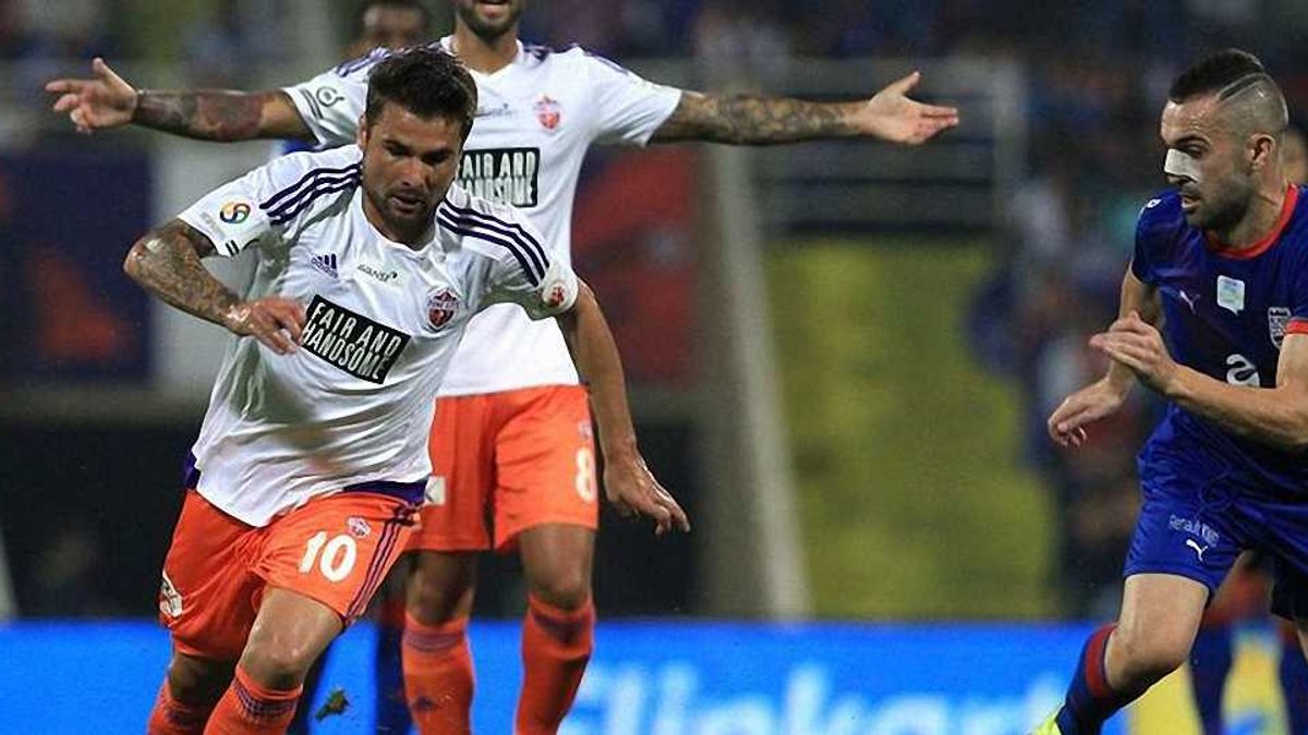 Слухи о завязке легендарный румынский нападающий красивым ударом со штрафного опроверг в матче чемпионата Индии против "Дели Динамос", за который выступают Йон-Арне Рииисе и Флоран Малуда, а тренирует Роберто Карлос.