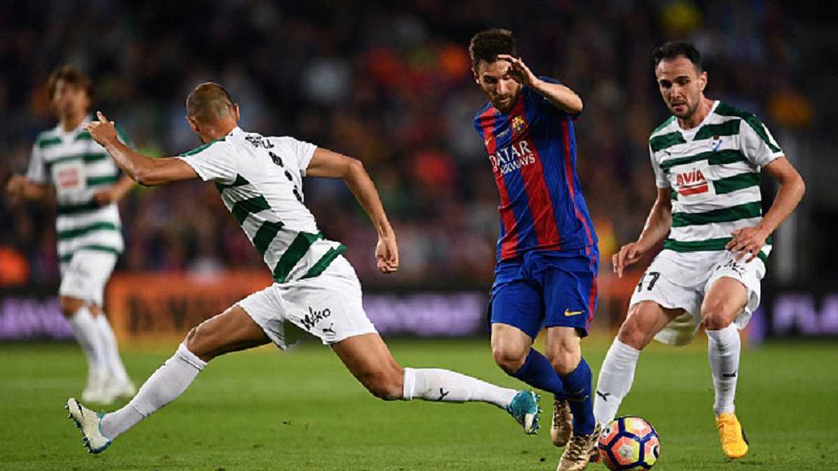 Лионель Месси в одиночку обыграл защиту Эйбара и забил четвёртый гол в ворота соперника. Барселона - Эйбар. Арбитр назначил комический пенальти, который не реализовал Месси