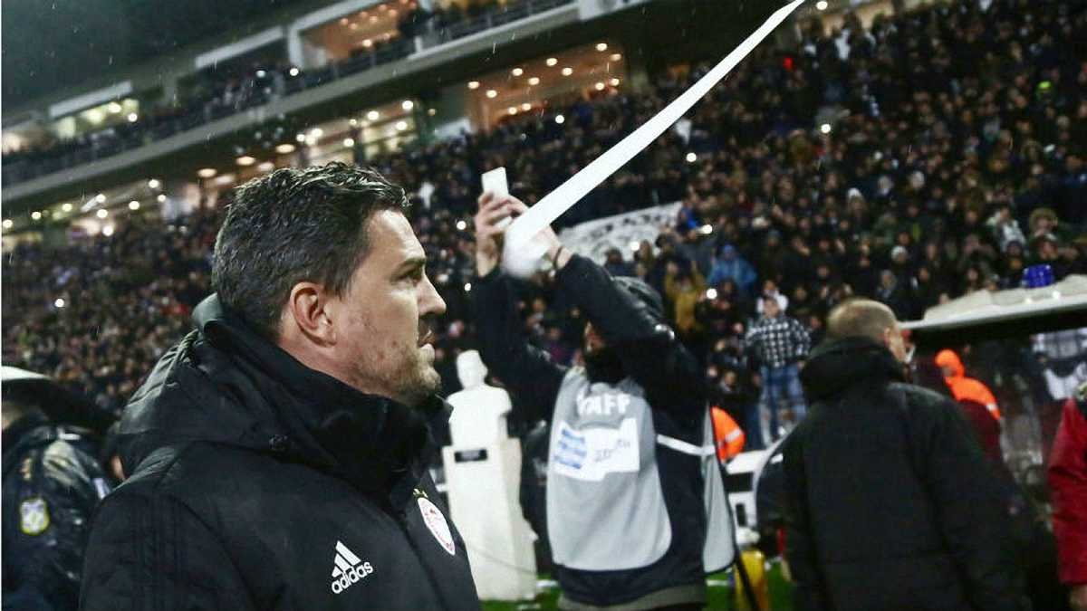 Напомним, фанаты ПАОКа травмировали тренера Олимпиакоса Оскара Гарсию. После этого арбитр решил не начинать матч и увел команды с поля.