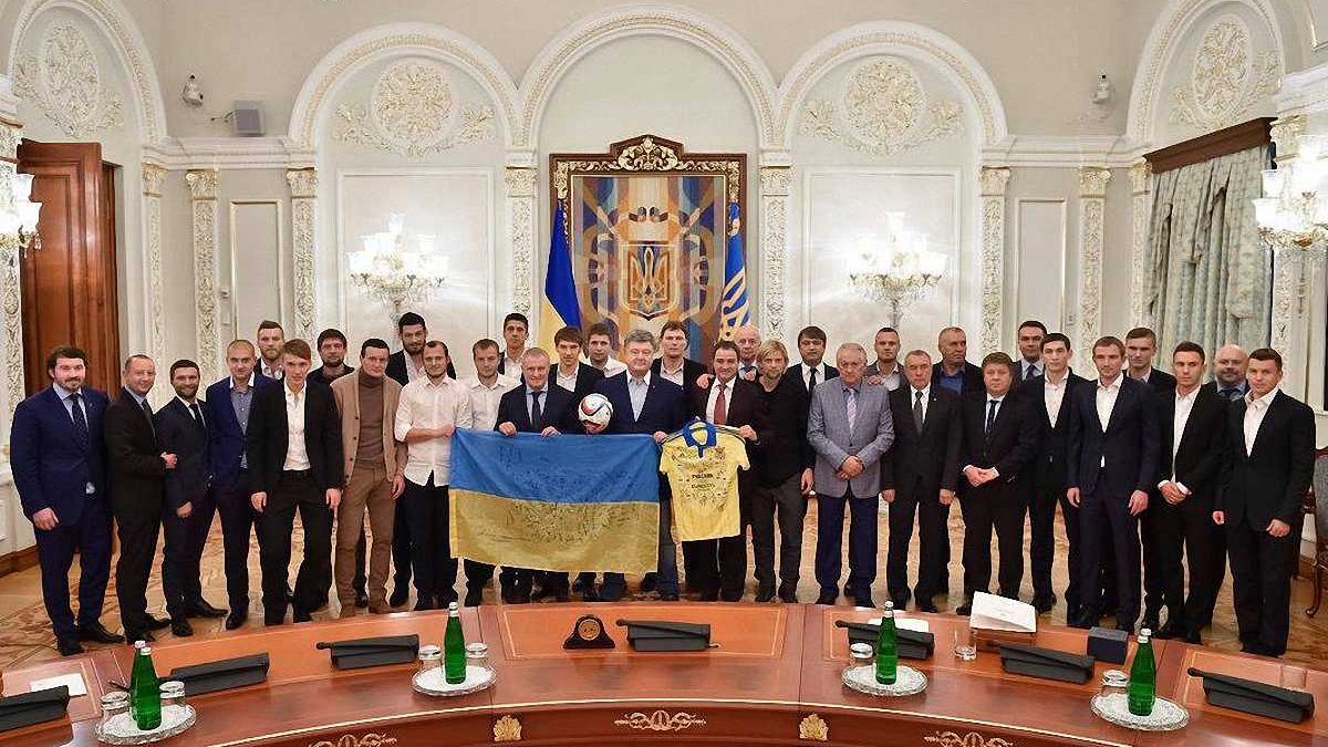 В завершении встречи Порошенко наградил команду памятными подарками.