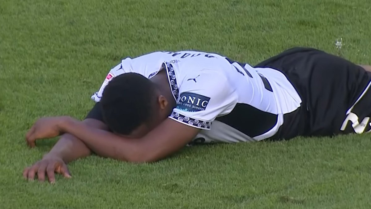 "Баранам" удалось отбиться, а 28-летний хавбек Ибу Адамс даже нашел силы для сумасшедшего рывка от ворот до ворот. Игрок Дерби обогнал защитника, просто снес голкипера и мчался к пустым воротам. Впрочем, Адамс умудрился покатить мяч мимо стойки и от стыда спрятал лицо в газон.