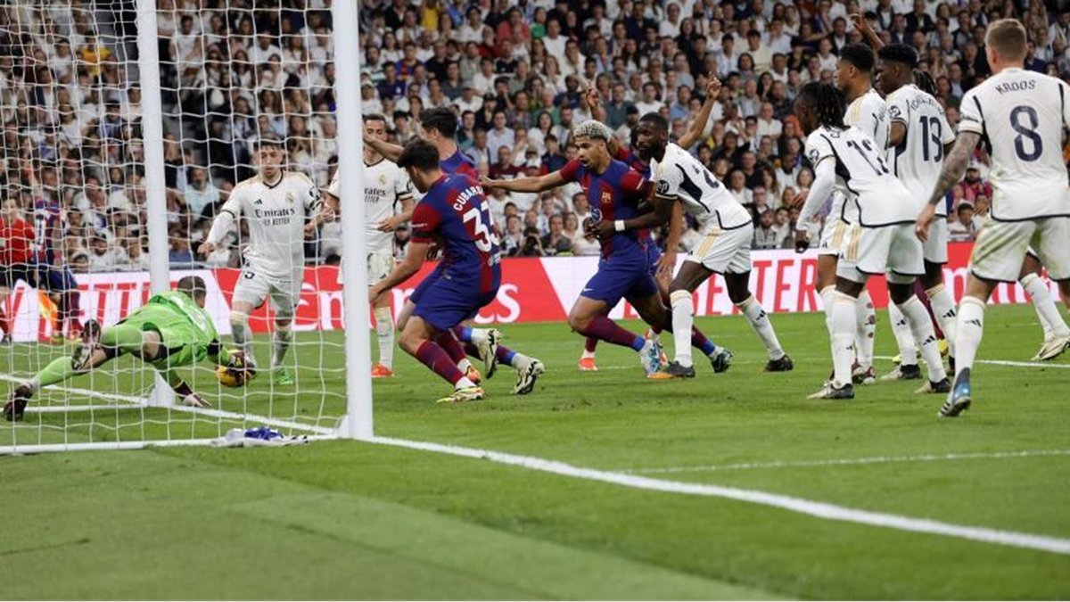 На 28 минуте матча между "сливочными" и "кулес" Ламин Ямал пробил по воротам Андрея Лунина. У арбитров возникли сомнения относительно того, пересек ли мяч линию, поэтому гол не засчитали.