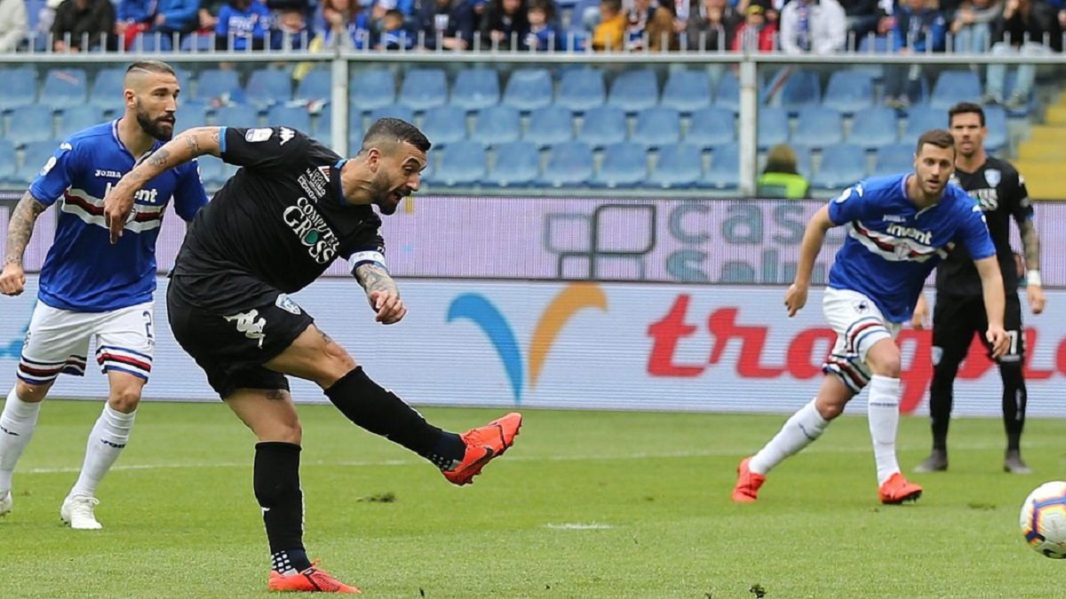 В другом матче Сампдория принимала Эмполи. "Блучеркьяти", не оправдав надежд болельщиков, выпали из борьбы за еврокубки и просто доигрывали сезон. Зато Эмполи ведет отчаянную борьбу за выживание, поэтому в этом матче не имело права на ошибку. Первый тайм голов не принес и запомнился лишь ударом в штангу ворот Кристиана Делль’Орко. На 56-й минуте Диего Фариас после передачи Хамеда Траоре вывел Эмполи вперед. На 75-й минуте арбитр назначил одиннадцатиметровый удар за фол Лоренцо Тонелли против соперника. С ударом Франческо Капуто голкипер справился, однако первым на добивании был Джованни Ди Лоренцо. На первой добавленной минуте судья назначил еще один пенальти, но уже в ворота Эмполи. Его четко реализовал Фабио Квальярелла. После этого матча Сампдория с 49 очками осталась на девятом месте, Эмполи набрал 35 пунктов и поднялся на семнадцатую строчку.