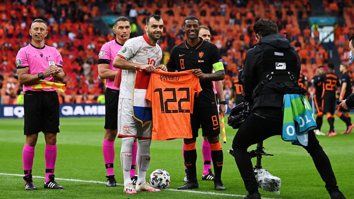 Последний поединок за сборную Северной Македонии проводил ветеран Горан Пандев, который накануне заявил о завершении карьеры в национальной команде. Матч против Нидерландов стал для 37-летнего форварда 122-м в футболке сборной (38 голов). Перед стартовым свистком македонская легенда получил специальную футболку от сборной Нидерландов.