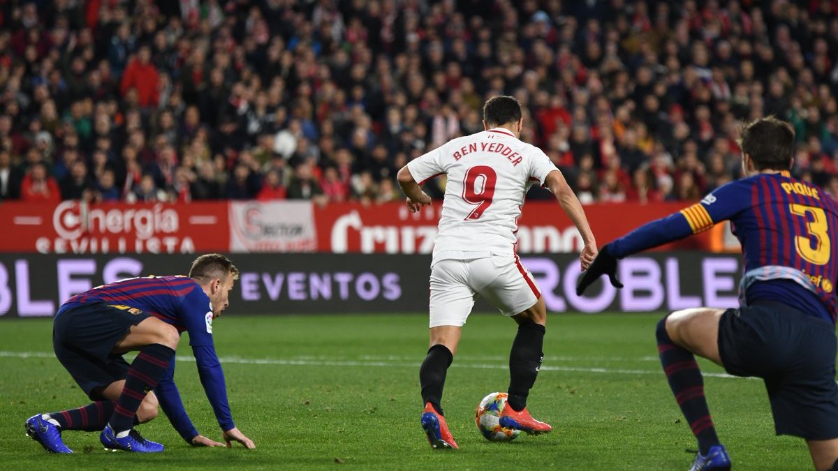 Весь матч не покидало впечатление, будто Барселоне не хватает футболиста. Так оно и было, ведь пятёрка хавбеков Севильи всегда имела большинство над центральной тройкой гостей. Это осложнялось агрессивным прессингом Бен-Еддера и Промеса, которые давили на защитников и заставляли Ракитича возвращаться назад на помощь.