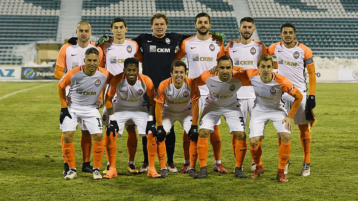 Игроки донецкого Шахтера во время исполнения гимна Украины перед матчем 23 тура УПЛ Ворскла – Шахтер (0:3). Фото: ФК Шахтер В матче-открытии второго этапа чемпионата Украины Шахтер разгромил Ворсклу в Полтаве.