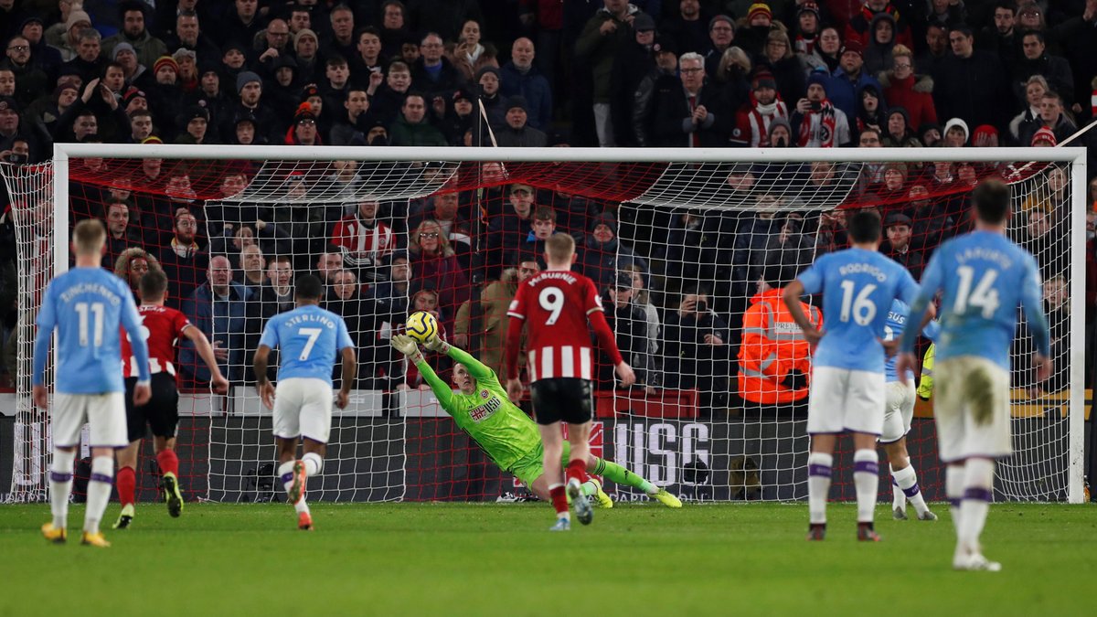 На 35-й минуте Марез ворвался в штрафную, прошел двух соперников, но был сбит третьим. Ли Мейсон назначил пенальти, который не реализовал Жезус. Бразилец пробил в левый от себя угол, однако не слишком удачно, а Хендерсон в блестящем прыжке достал мяч! Существовал риск, что арбитр заставит перебить, ведь еще до удара несколько игроков забежали в штрафную, но рефери проигнорировал этот факт. Просто феерическую игру демонстрировал бывший голкипер Манчестер Юнайтед в первом тайме. Его 3 сейва помогли "клинкам" выстоять в первые 45 минут, несмотря на полное преимущество Манчестер Сити. На последней минуте тайма Зинченко отдал на де Брюйне, но тот пробил выше. 0:0 – с таким счетом команды ушли на перерыв.