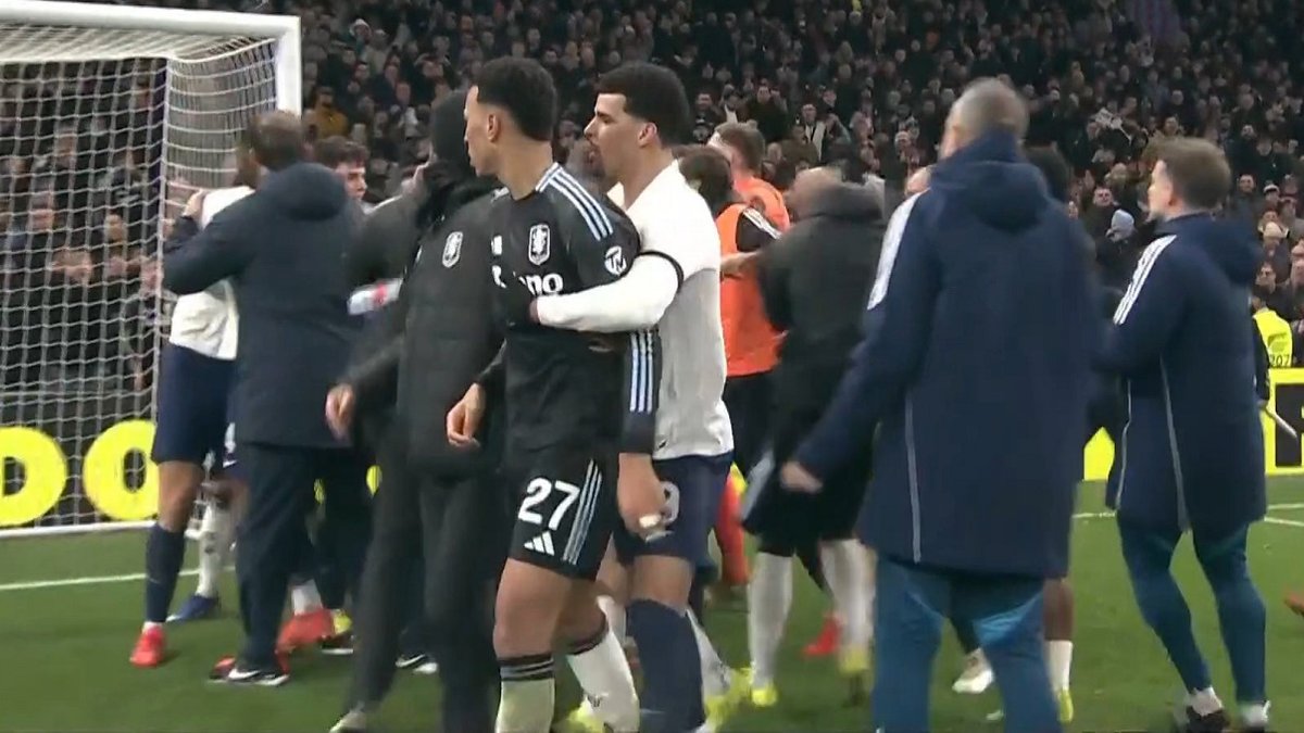 Хавбек Тоттенхэма жестко толкнул нападающего Астон Виллы. За партнера прибежал вступиться Морган Роджерс, который сцепился с Палиньей еще во время игры.