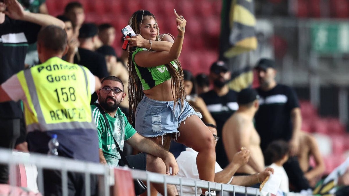 Скандальный баннер почему-то никак не убирали, а рядом творился другой беспредел. Болельщики Маккаби показывали непристойные жесты в камеру, а один имитировал секс с манекеном, завернутым во флаг Польши.
