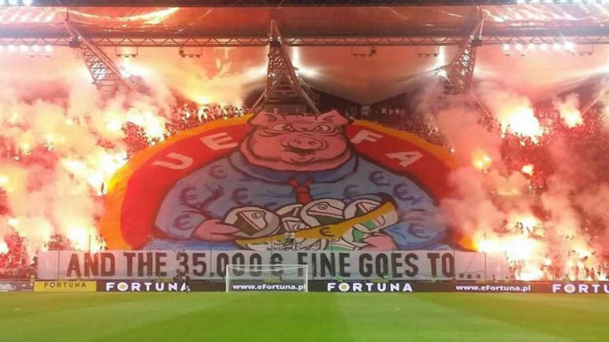 Напомним, что во время матча Легия – Динамо польские ультрас вывесили большой баннер с изображением свиньи, который посвятили УЕФА.