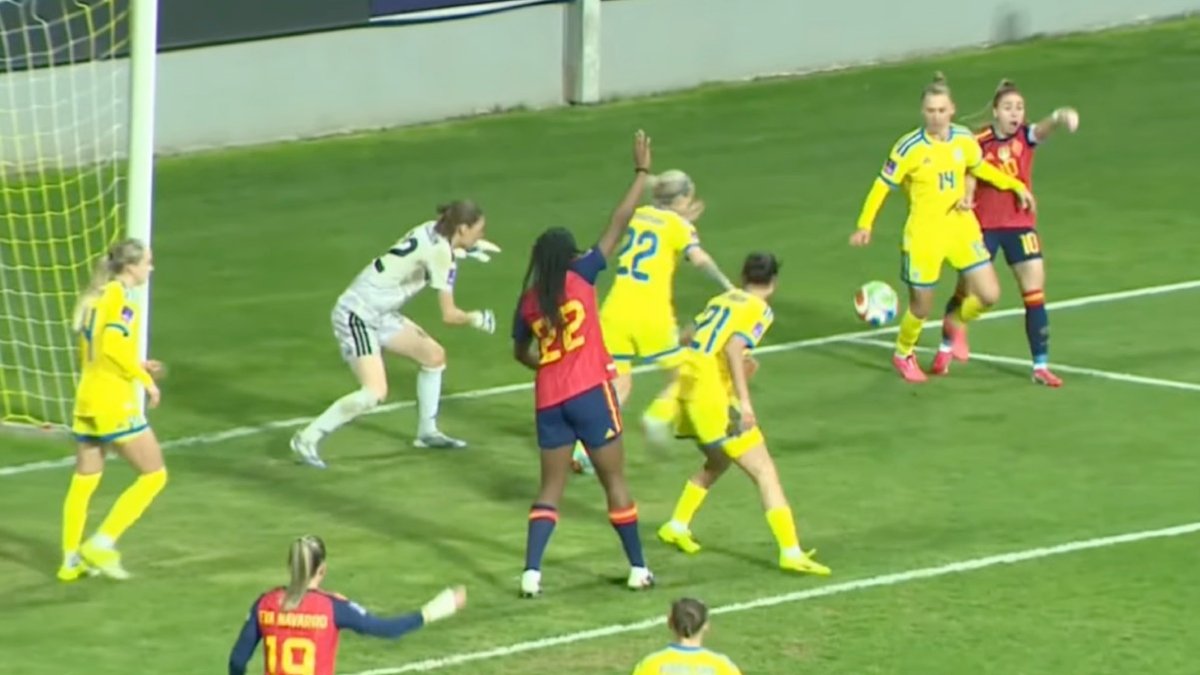 А на 43-й минуте Келюшик ошиблась на выходе, чем воспользовалась Имаде – форвардка Баварии головой переправила мяч в пустые ворота Украины ... Уже в компенсированное время невероятное взятие ворот сделала Коралес: удар от перекладины с 25 метров стал точно самым эффектным в матче. Первый тайм завершился преимуществом испанок 2:0.