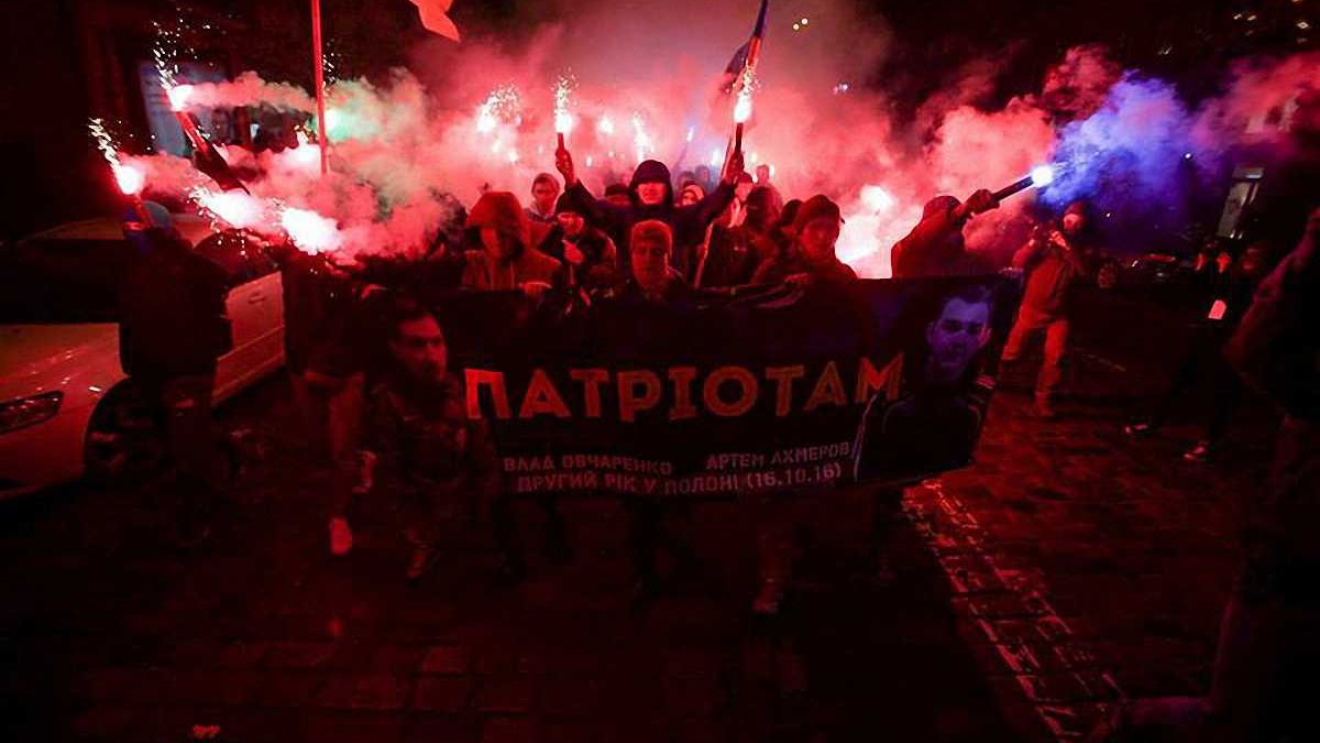 5 ноября болельщики украинских футбольных клубов и неравнодушные украинцы прошли маршем в поддержку фанов луганской Зари Влада Овчаренко и Артема Ахмерова, которых держат в плену пророссийские боевики на Донбассе, информирует Радио Свобода.