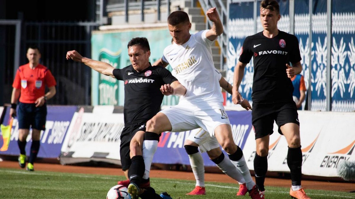 С первых минут на поле завязалась настоящая мужская борьба за каждый клочок поля. Обе команды действовали без разведки, решительно и по-взрослому. Луганчанам довольно быстро удалось выиграть центр поля и переместить игру к воротам соперника. Первый опасный момент возник уже на 6-й минуте: Кочергин нанес мощный удар из-за пределов штрафной – мяч просвистел над перекладиной. Замечательные атаки разгоняли Юрченко и Кочергин – обоим не хватало точности и пространства для принятия решения.